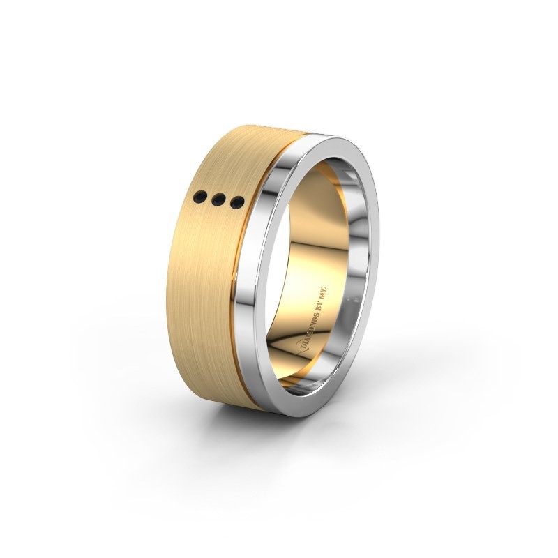 Bicolor Gold Gold Damen Trauring 7 Mm Mit Schwarz Diamant Wh0325l17apm