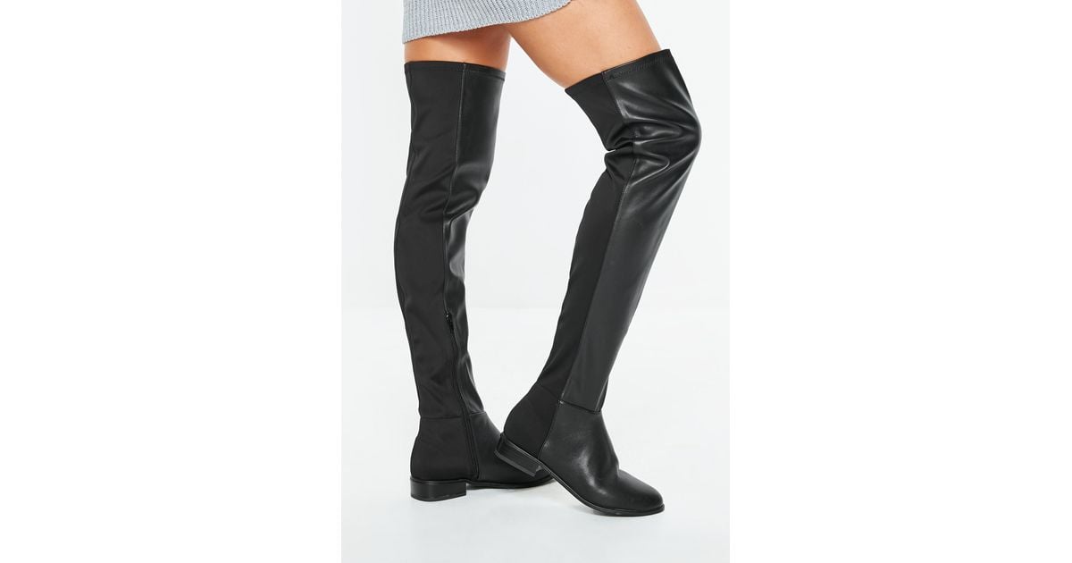 Missguided Black Faux Leather Flat Over The Knee Boots Lyst