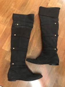 Stuart Weitzman Overknee Millie Black Suede Leather Overknee Boots Shoes