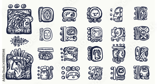 Mayan Alphabet Mexican Mesoamerican Glyphs Hieroglyphics Maya Civilization Collection Old School Tattoo Style Buy This Stock Vector And Explore Similar Vectors At Adobe Stock Adobe Stock