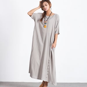 Women S Linen Short Sleeves Summer Maxi Dress Loose Linen Etsy