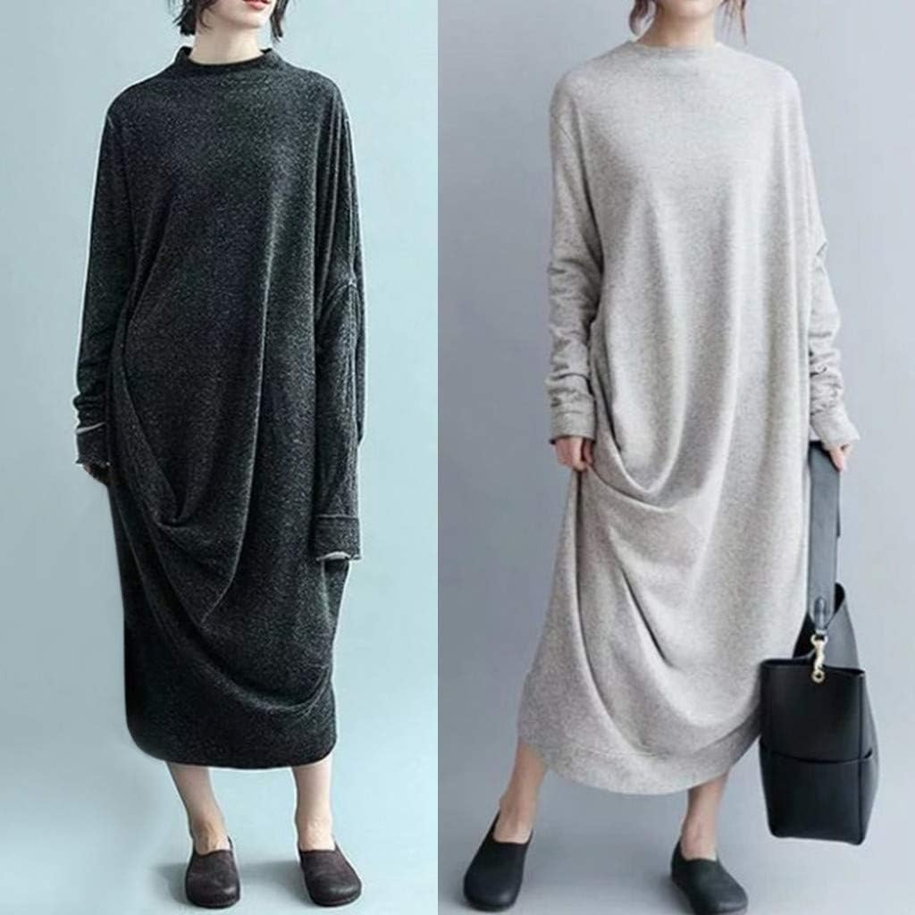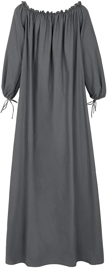 Ursing Damen Streetwear Einfarbig Rundausschnitt Leinen Langarm Frauen Freizeit Bluse Sommer Freizeithemd Kaftan Langarm Kleidung Boho Kleider Lange Grosse Maxikleid Amazon De Bekleidung