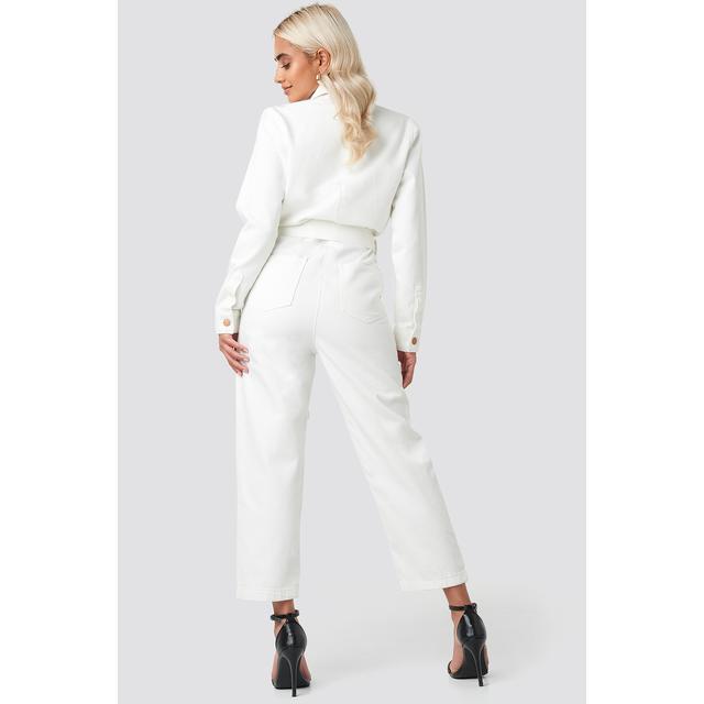 Waist Belt Denim Jumpsuit Weiss From Na Kd On 21 Buttons