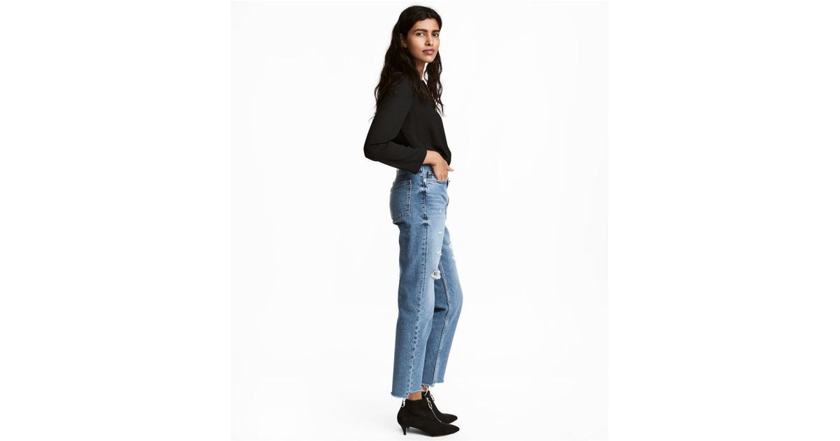 H M Denim Straight Ankle High Jeans In Light Denim Blue Blue Lyst