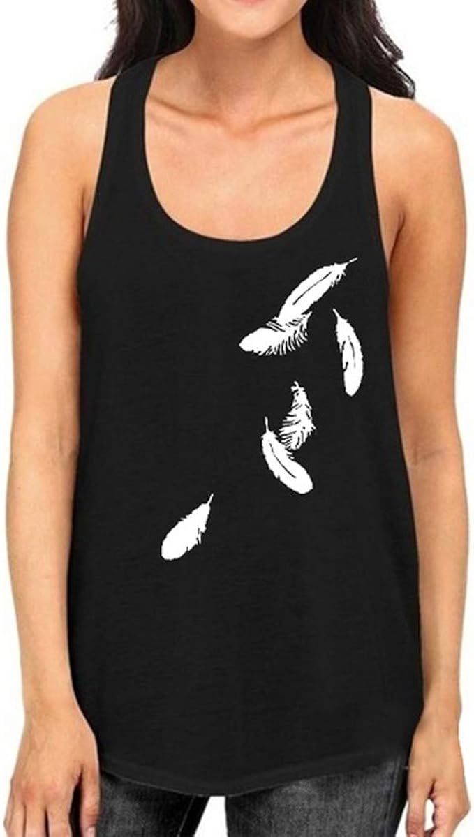 Goosuny Tanktops Damen Sommer Tank Tops Bluse Casual Feder Gedruckt Ruckenfreies Sport Top Loose Frauen Armellos T Shirt Lassige Sleeveless Shirts Oberteil Amazon De Bekleidung