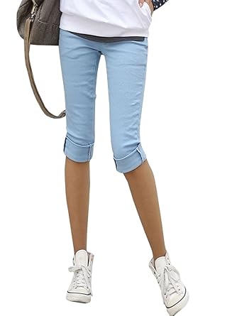 Damen Kurze Capri Jeans Shorts Leichte Bermuda Real De