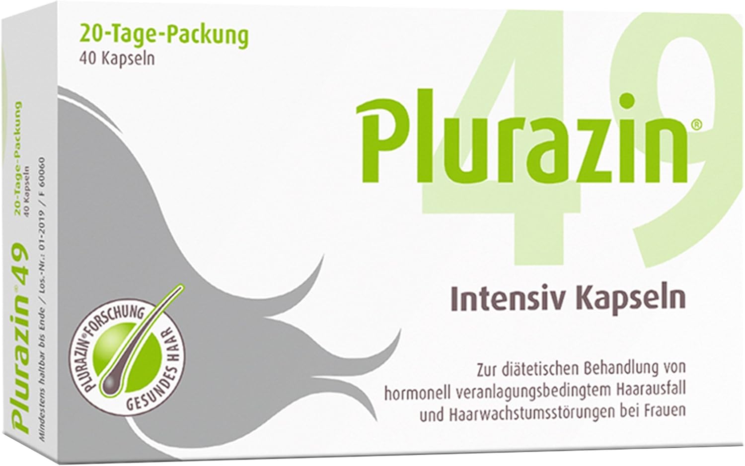 Plurazin 49 Intensiv Kapseln I Bei Haarausfall Haarwachstumsstorungen In Den Wechseljahren Menopause I Haar Nahrstoffe Vitamine Mineralien I Arginin Leinsamen Extrakt Koffein 40 Stuck Amazon De Drogerie Korperpflege