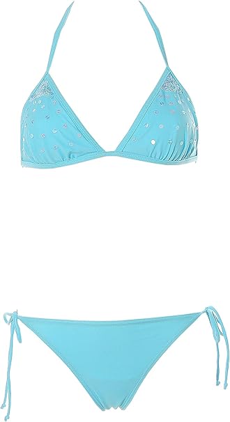 Strandladen Damen Triangel Bikini Beachwear Glitzer Pailletten Hellblau 38 Amazon De Bekleidung