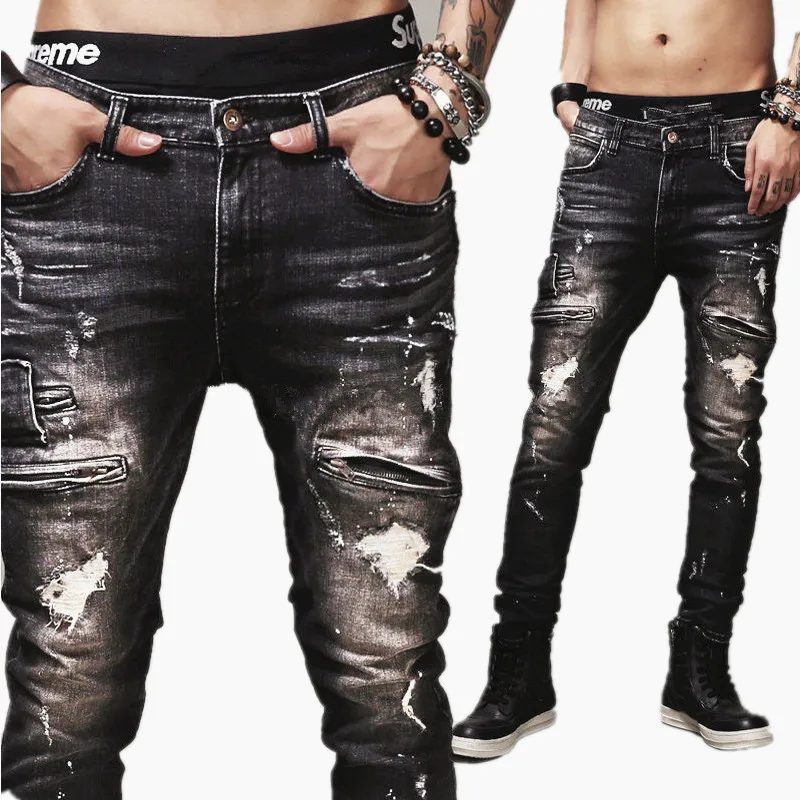 Herrenmode Herren Slim Jeans Hose Vintage Destroyed Denim Risse Locher Zerschnitten Kaputt Kleidung Accessoires Thelanguagemall Org
