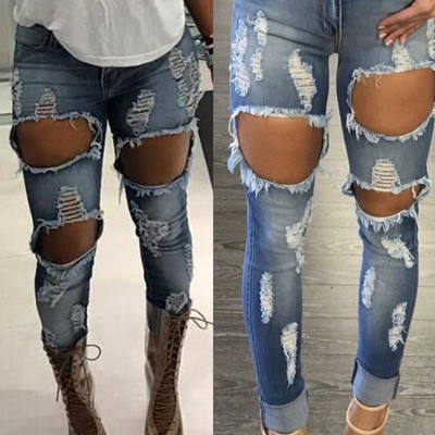 High Waist Slim Skinny Jeans Light Blue Women S Destroyed Denim Pants Trousers Ebay