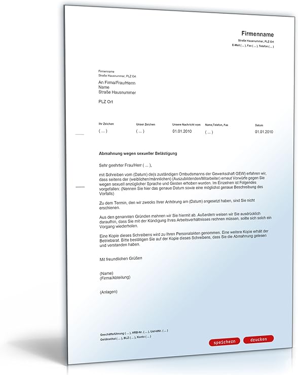 Abmahnung Wegen Sexueller Belastigung De Musterbrief Download