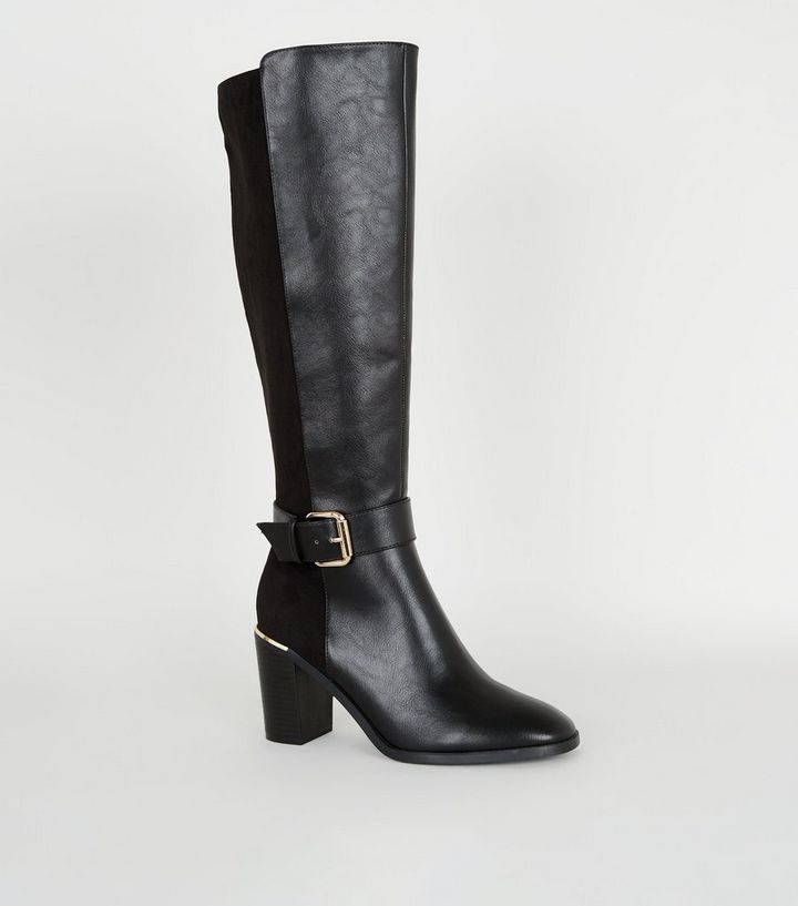 Schwarze Kniehohe Stiefel In Leder Optik Mit Absatz New Look