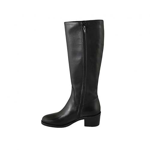Damenstiefel Aus Schwarzem Leder Mit Reissverschluss Absatz 5