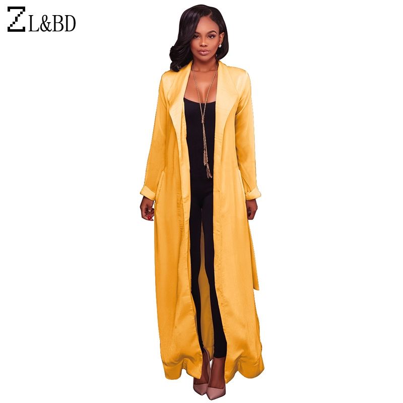 21 Zl Amp Mantel Damen 18 Spring Long Trench Coat Women Long Sleeve Turn Down Collar Satin Trench Cardigan Windbreaker Za119 From Kfashions 43 9 Dhgate Com