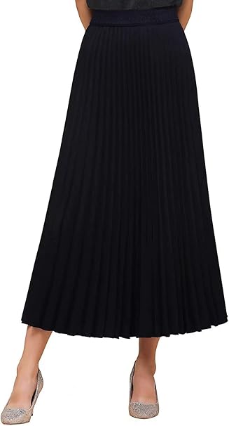 Tomwell Damen Rock Falten Rock Hohe Elastische Taille A Line Lang Rocke Plissee Rock Knielang Midi Rock Frauen Plisseerock D Langer Rock Rocke Knielang Plissee