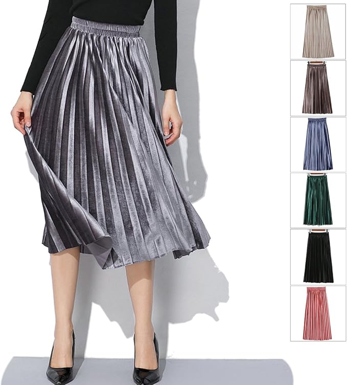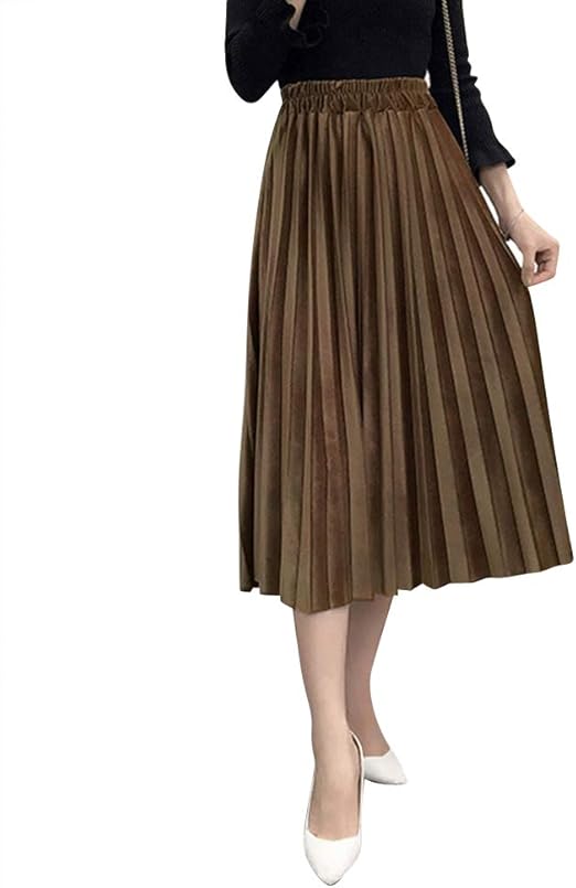Damen Plissee Rock Midi Faltenrock Pleuche Velours Samt Elegant Damenrock Elastische Hohe Taille Rock Fur Herbst Winter Einfarbig Grosse 34 36 38 40 42 44 Amazon De Bekleidung