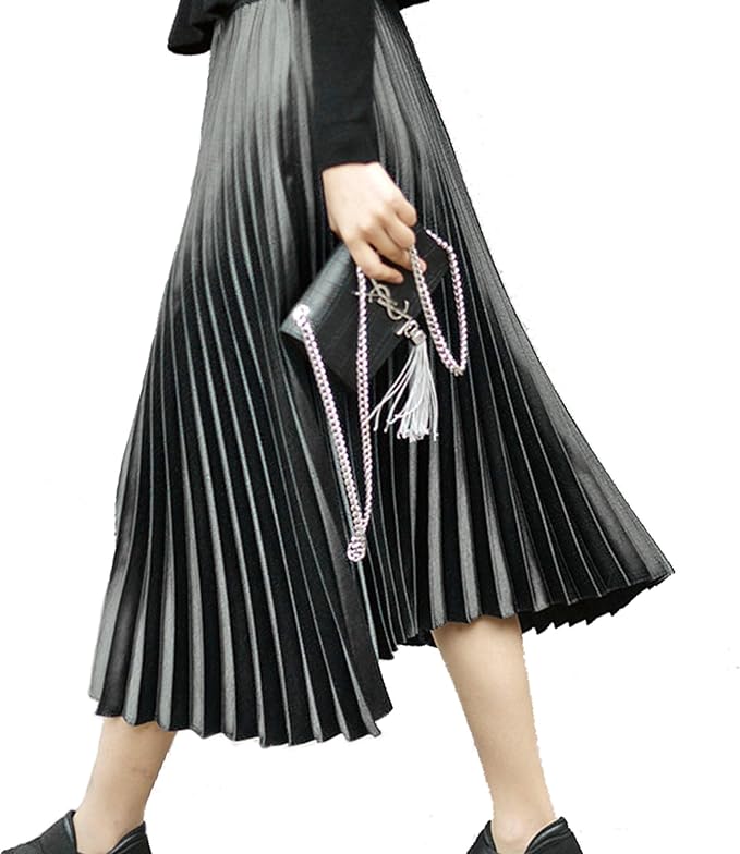 Damen Pu Faltenrock Midi Elegant Plisseerock Lang Falten Rock Elastische Herbst Winter Einheitsgrosse Schwarz Jetzt Unschlagbar Gunstig Shopping24 De