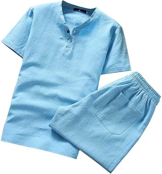Sunnymi 2pc Herren Outfit Sommer Neue Baumwolle Und Hanf Kurzarm Shorts Mode Bequemen Anzug Amazon De Bekleidung