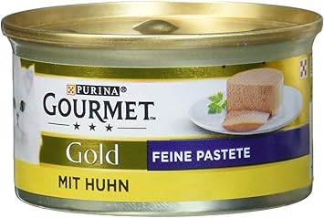 Lieferumfang Großpackung mit 12 Einzelportionen im 12er Pack (12 x 85g). PURINA GOURMET Gold Feine Pastete Katzenfutter nass, mit Huhn Finden Sie alles rund um ihr Tier bei Amazon Gratis Versand durch Amazon schon ab 29€. DasPurina Gourmet Gold feine Pasteteist der besondere Genuss für die ebensolch besondere Katze Die Pastete ist ganz fein püriert und so zart, dass sie an Mousse erinnert Mit vier Sorten Fleisch vom Kaninchen, Rind, Kalb und Lamm schmeckt sie Ihrem vierbeinigen Gourmet auf alle Fälle, denn es gibt kaum eine zartere Konsistenz.