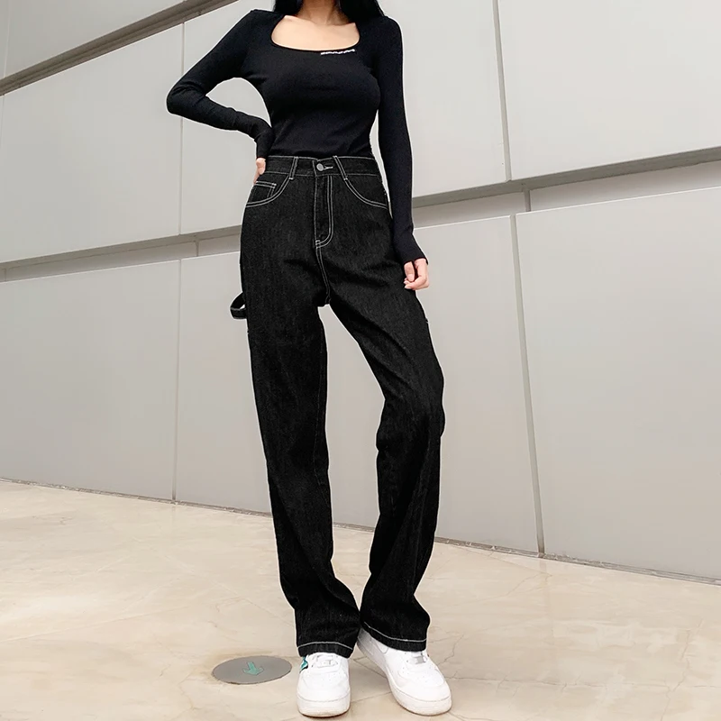 Weekeep Mode High Street Gerade Jeans Frauen Cargo Hosen Damen Tasche Patchwork Lose Denim Hosen Koreanische Trouers Schwarz Jeans Aliexpress