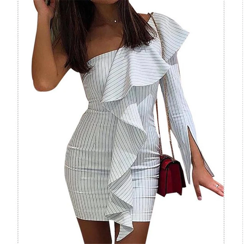 Europa Stil Frauen Kleider Schulter Hang Halter Langarm Bleistift Kleid Hohe Taille Bodycon Sexy Club Party Frau Kleid Cerstyle Me