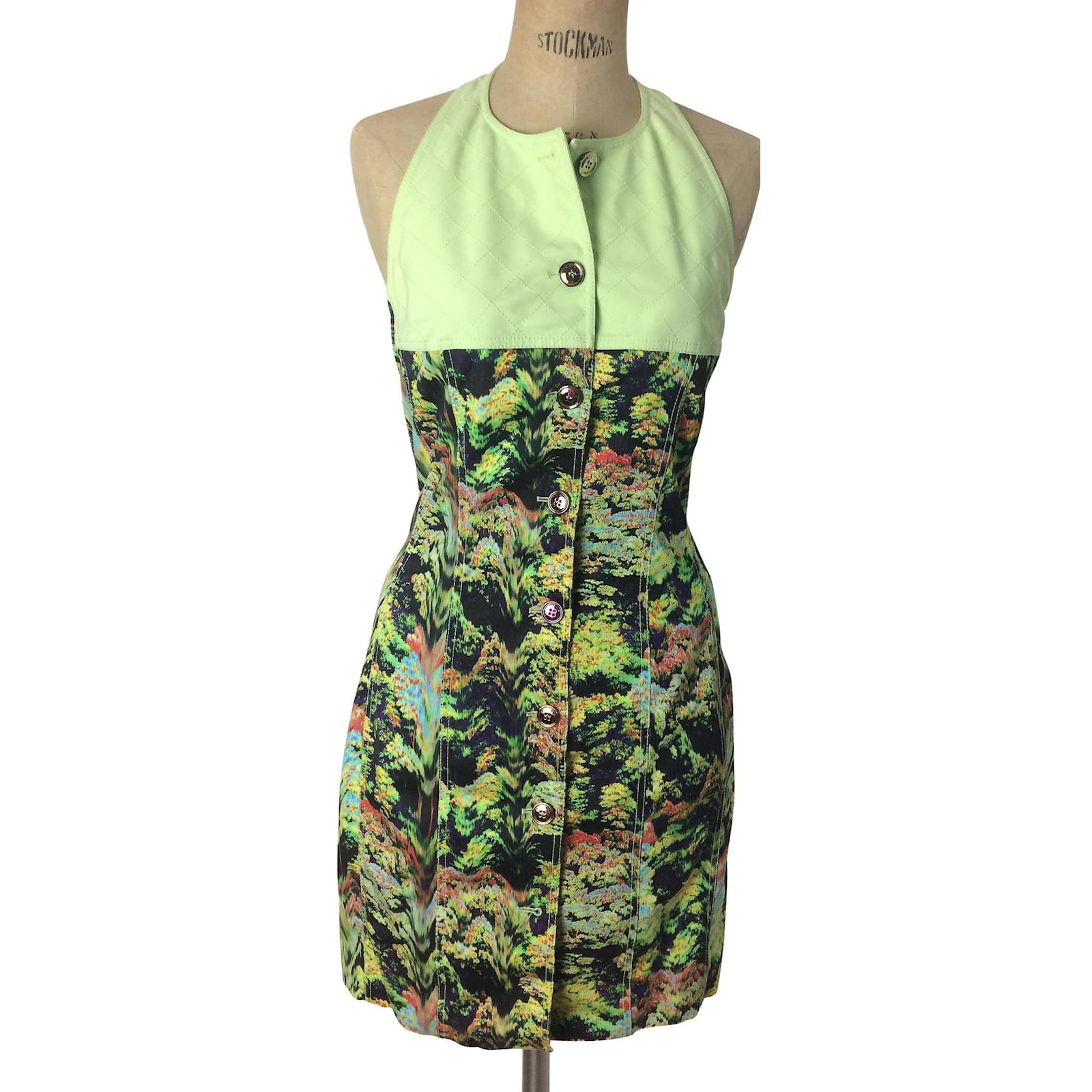 Kenzo Bleistift Kleid Kenzo Ruckenfrei Kleider Baumwolle Viskose Elasthan Mehrfarben Hellgrun Ref 1187 Joli Closet