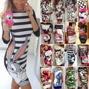Damen Sommer Minikleid Kleider Bodycon Partykleid Bleistift Freizeit Lang Shirt Ebay