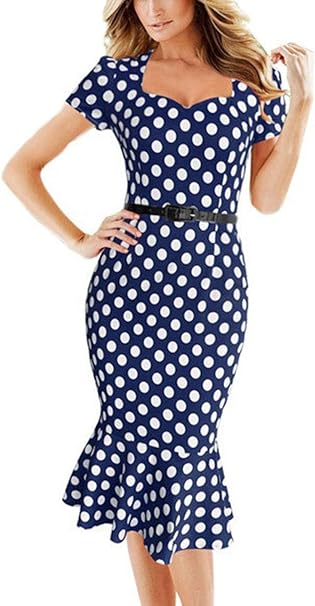 Yacun Damen Arbeit Kleider Vintage Polka Punkt Bleistift Meerjungfrau Party Kleid Amazon De Bekleidung