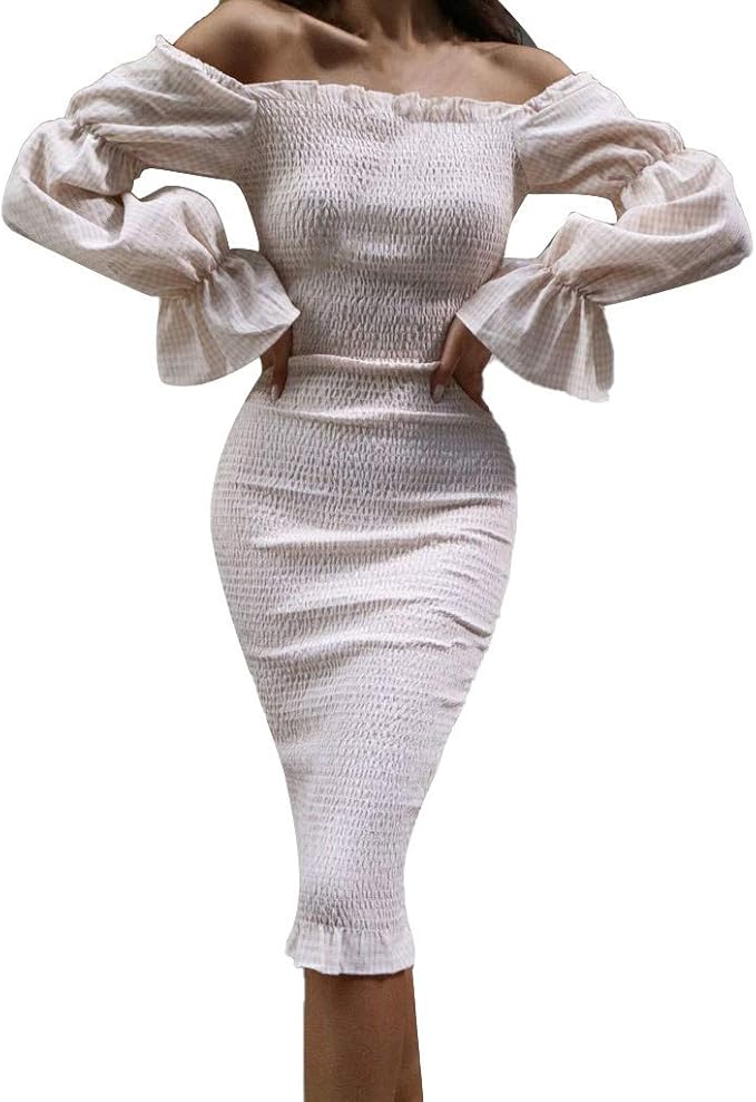 Salucia Damen Off Shoulder Carmen Etui Kleid Sexy Figurbetonte Puffarmel Knielang Bleistift Kleider Partykleid Abendkleid Amazon De Bekleidung