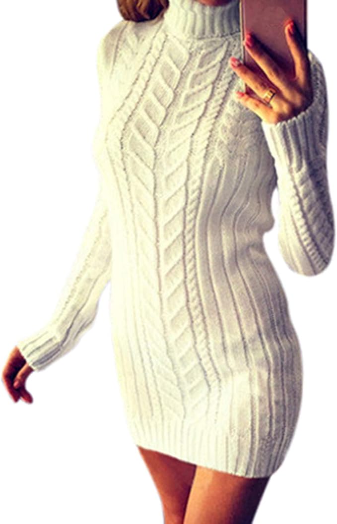 Damenmode Damen Bleistift Kleid Pullover Minikleid Rollkragen Sweatshirt Winter Langetops Kleidung Accessoires Sticisce Sredisce Si