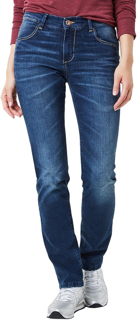 Tom Tailor Damen Straight Fit Jeans Hose 5 Pockets Mid Stone Wash Dunkel Blau Den