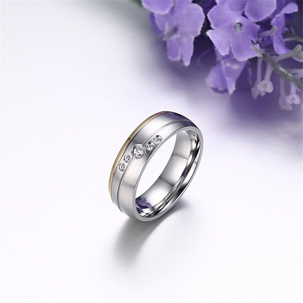 Pauro Paar Edelstahl Titan Stahl Gold Band Mit Zirkonia 6mm Versprechen Hochzeit Und Verlobungsring