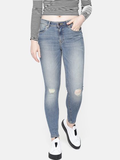 Buy Only Women Blue Carmen Skinny Fit Low Rise Mildly Distressed Stretchable Jeans Online Looksgud In