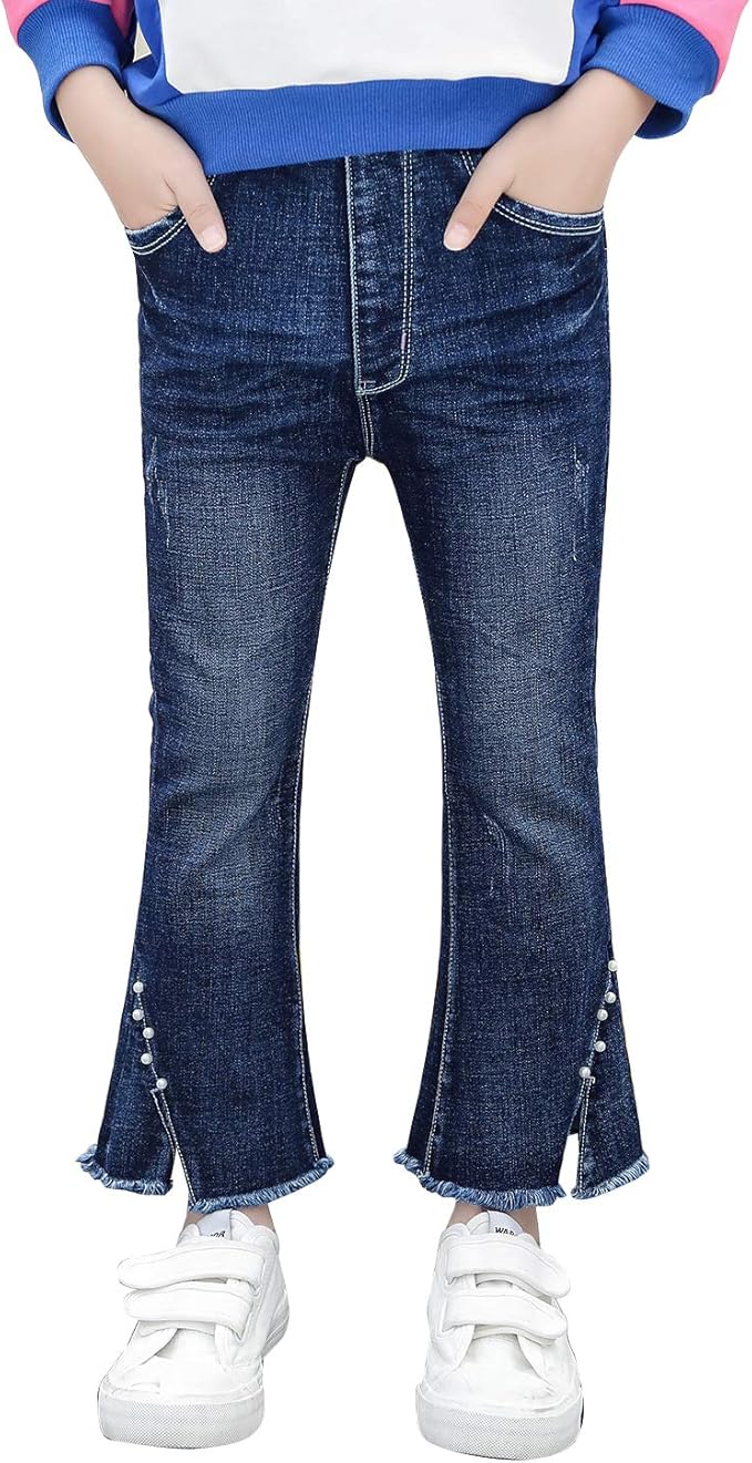 Panpanbox Panpanbox Retro Jeanshose Madchen Boot Cut Zerrissene Jeans Kinder Schlaghose Hoher Bund Denim Girl Pants Flared Freizeithosen 3 11 Jahre Jeanshosen Amazon De Bekleidung