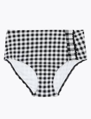 Hoch Geschnittene Bikinihose Mit Gingham Muster Und Ruschen