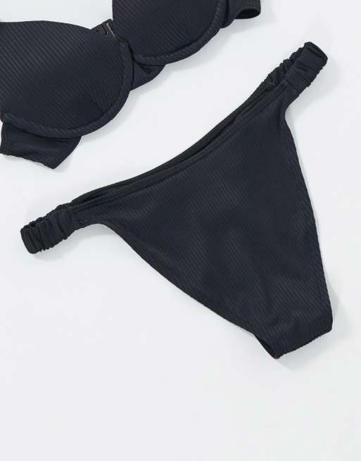 Fashion Union Gerippte Bikinihose Mit Hohem Beinausschnitt In Schwarz Evesham Nj