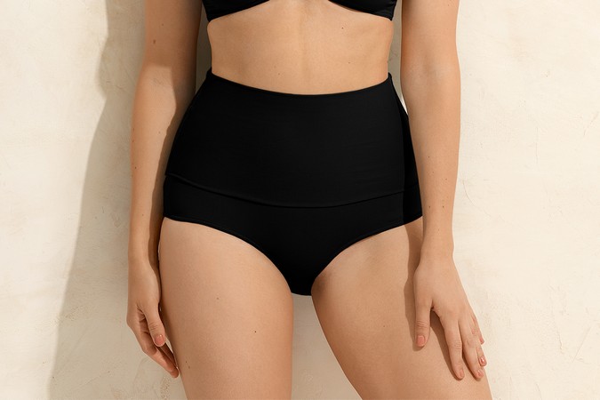 Hochgeschnittene Bikinihose Schwarz Boden De