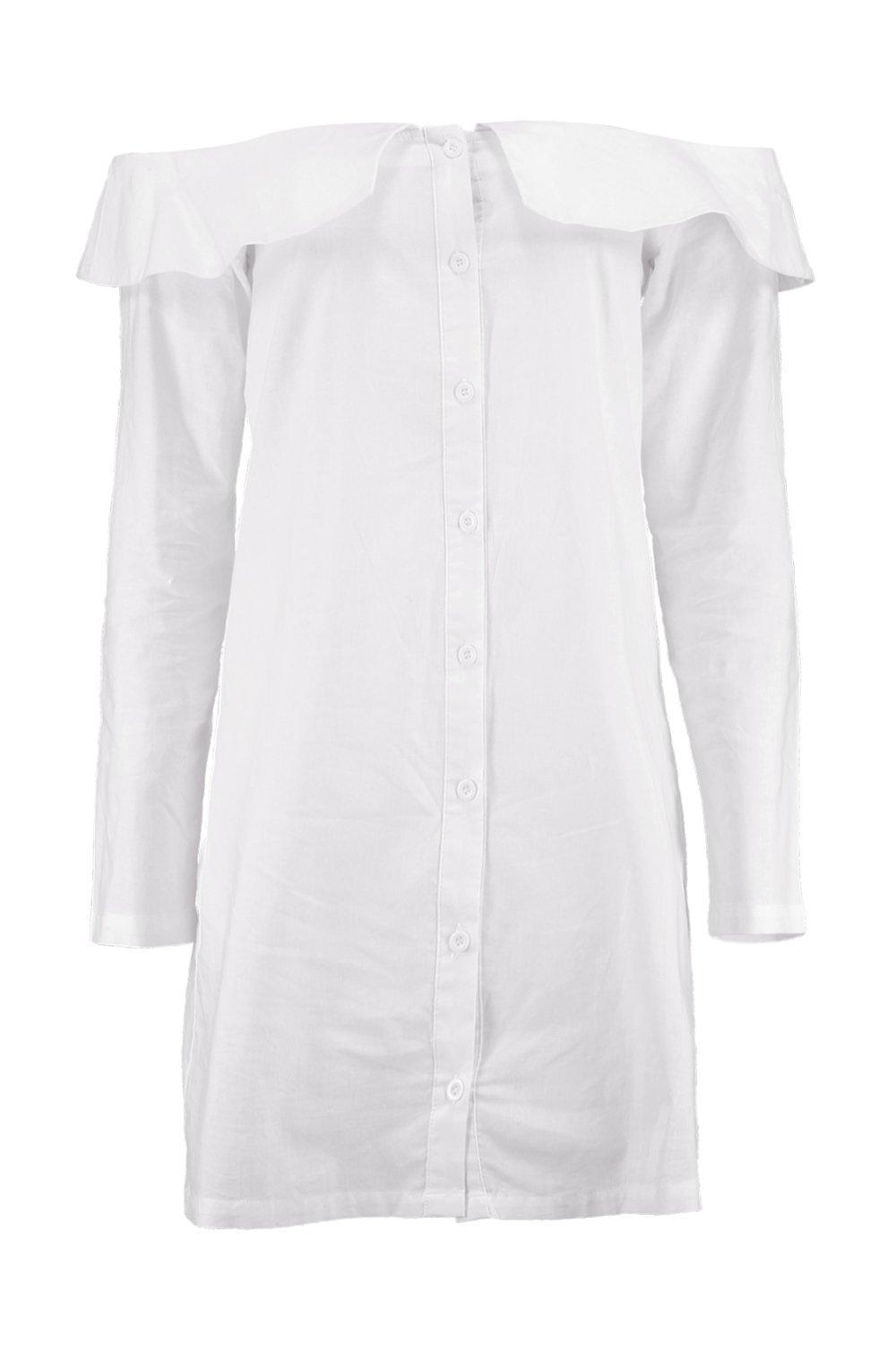Loop The Loop Off The Shoulder Bardot Shirt Dress In White From Oh Polly On 21 Buttons