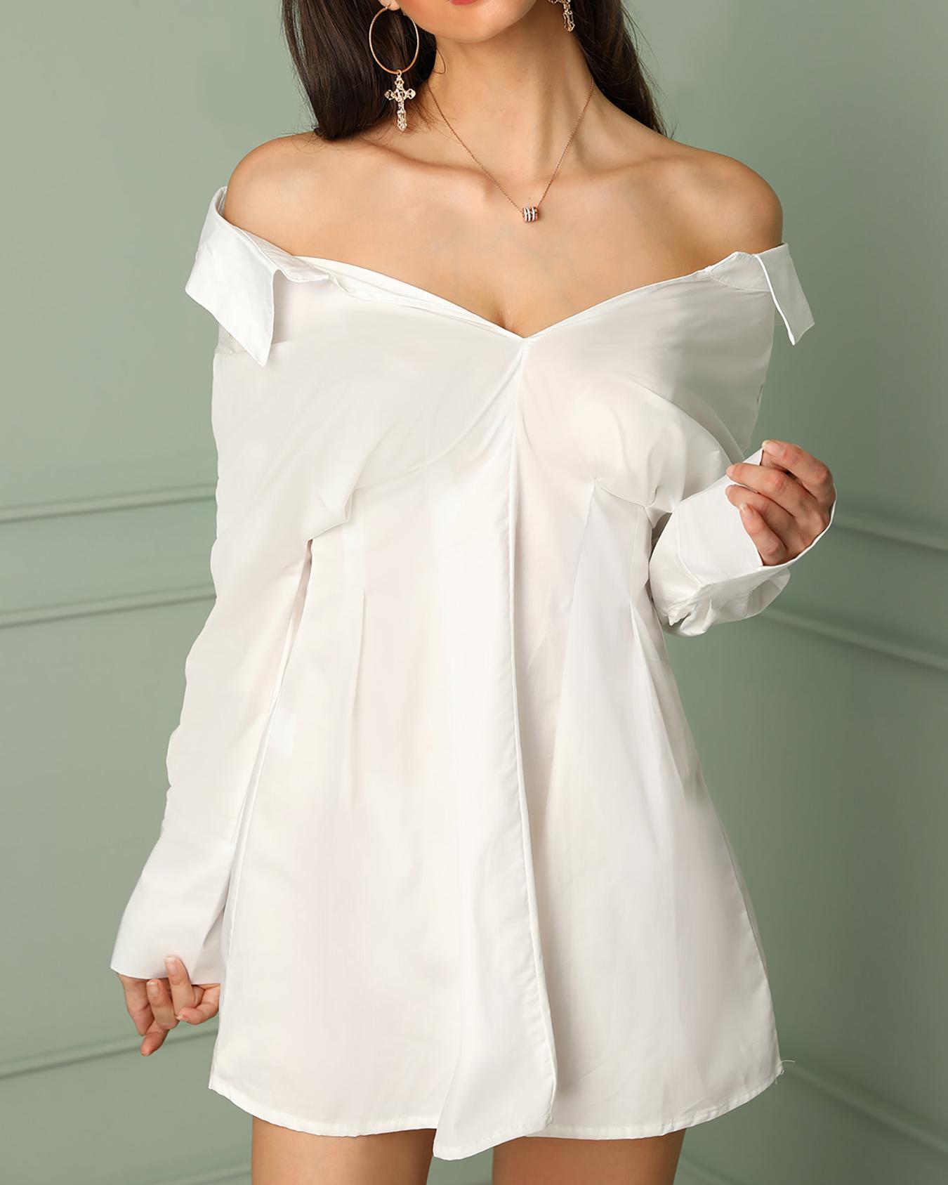 Off Shoulder Long Sleeve Casual Shirt Dress