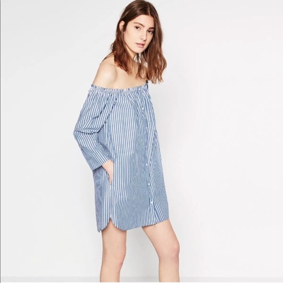 Zara Dresses Salezara Striped Offshoulder Shirt Dress Poshmark