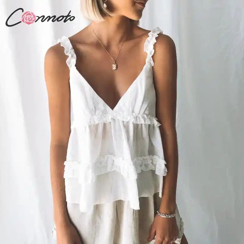 Conmoto Mesh Frauen Tops Und Blusen 19 Weiss Ruschen Sexy Spaghettie Strap Strand Tops Sommer Sheer Rosa Bluse Damen Tops Leibchen Aliexpress