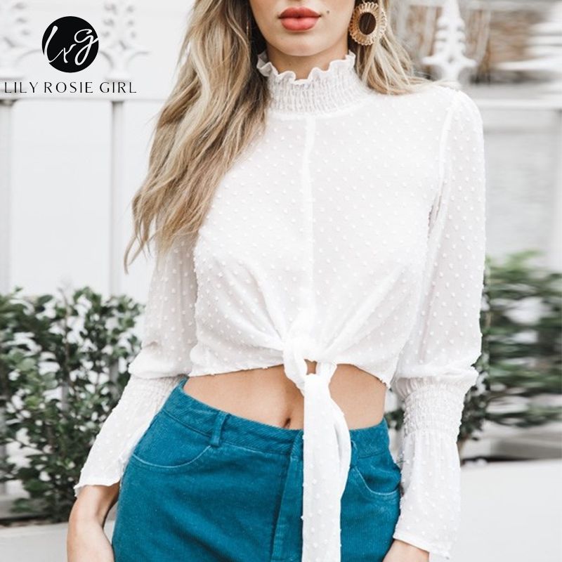 Grosshandel Lily Rosie Girl Durchsichtig Damen Bluse Shirt Ruschen Spitze Sexy Crop Top Herbst Winter Solide Langarm Chiffon Bluse Weiss Von Pinkcolor 05 Auf De Dhgate Com Dhgate