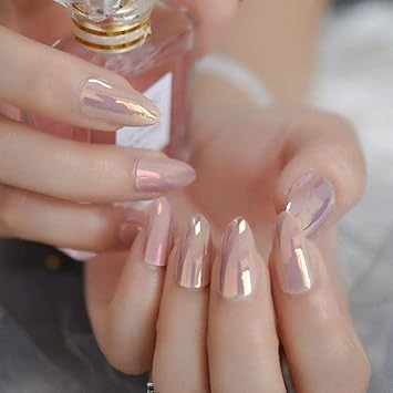Tjjf Falsche Nagel Mokka Pink Spiegel Falsche Nagel Chrom Stiletto Kunstnagel Glas Glanzender Effekt Oberflache Damen Fingernagel Gefalscht 24 Amazon De Beauty