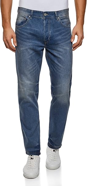 Oodji Ultra Herren Gerade Geschnittene Jeans Mit Regularem Bund Blau 28w 34l Amazon De Bekleidung