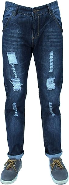 Forever Young Herren Dark Denim Rip Jeans Designer Distressed Slim Regular Fit Stretch Gerade Geschnittene Jeans W34 L36 Amazon De Bekleidung