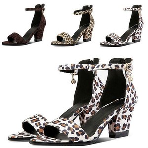 Leopard Damenschuhe Open Toe Blockabsatz Sandalen Pumps Reissverschluss Strass Ebay