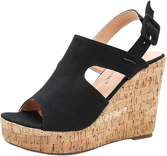 Elecenty Sandalen Damen 10cm Hoch Absatz Blockabsatz Sandalen Plattform Sommerschuh Frauen Sommer Schuhe Peep Toe Wedges