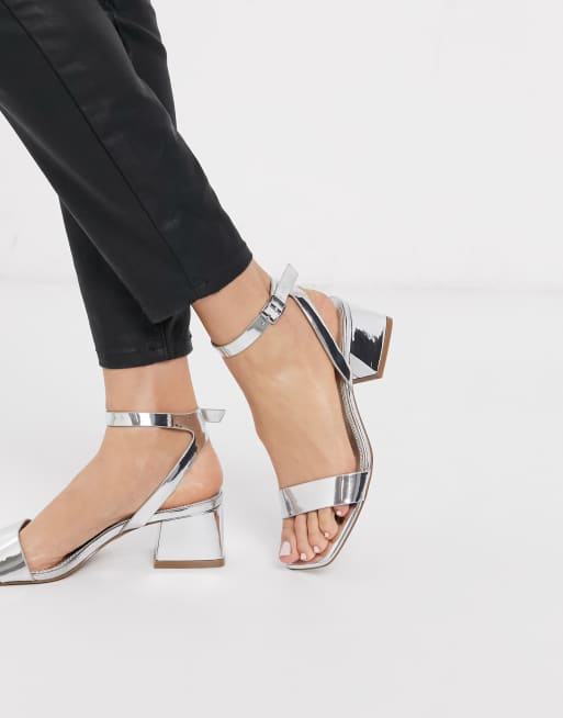 Asos Design Hocco Sandalen Mit Blockabsatz In Silber Asos