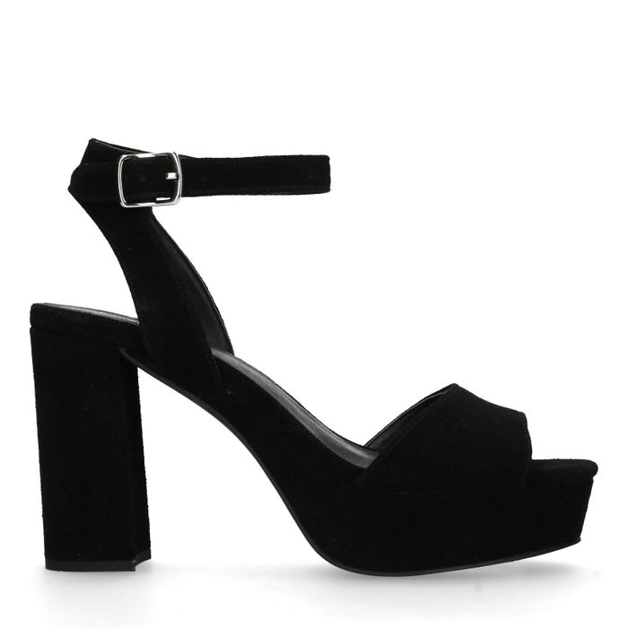 Schwarze Sandalen In Wildleder Optik Mit Riemchen Und Blockabsatz New Look