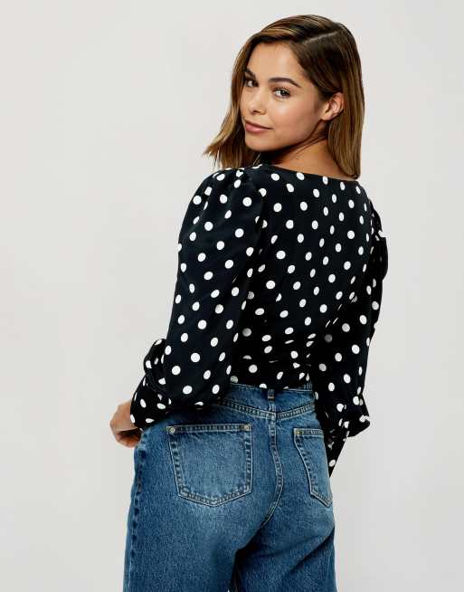 Miss Selfridge Schwarz Und Weiss Gepunktete Bluse Mit Eckigem Ausschnitt Asos